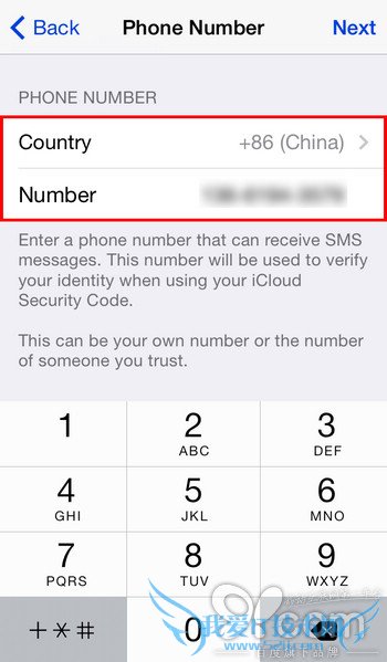 第九步:选择你所在的国家(确定前缀区号)和输入你的新的电话号码,接着点击右上角的「下一步」按钮。