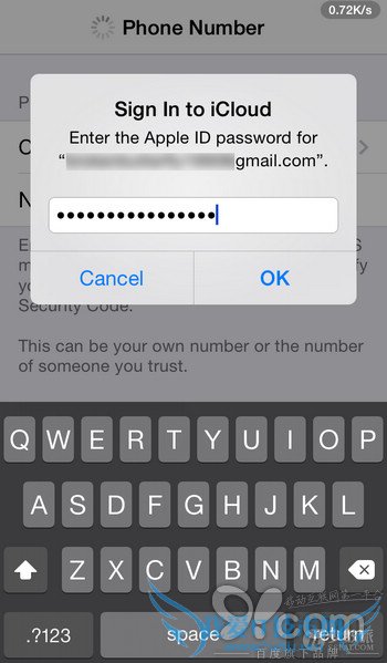 第十步:输入你在 iPhone 上登录的 iCloud 账户密码,然后点击登录面板右下角的「好」按钮登录。通过这一步系统将你的新的电话号码与 iCloud 账户进行绑定。