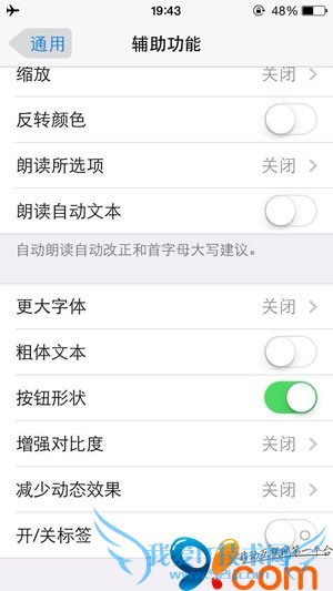 如果你不喜欢 iOS 7的赤裸按钮,如果你很难发现在导航栏的操作按钮,如果你渴望 iOS 6风格的开关按钮,那么你会很高兴的发现 iOS 7.1会满足你的期望。没错,就是隐藏在辅助功能内的「按钮形状」。