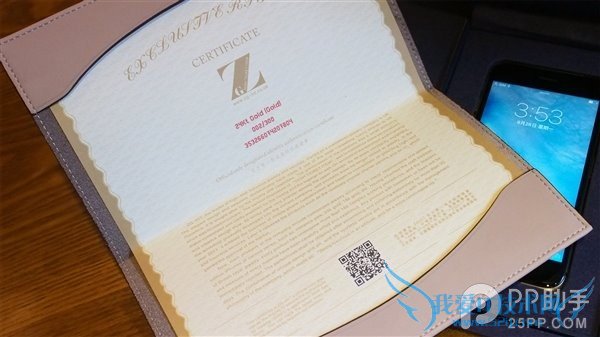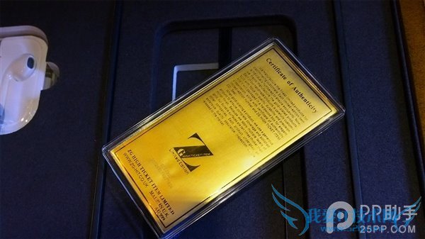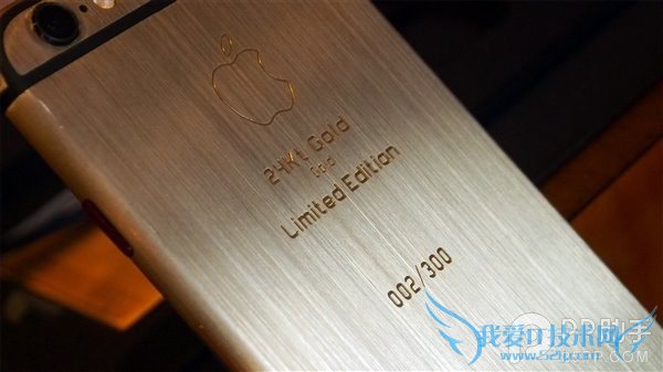 后壳上除了苹果Logo外,还有ZG-HIT专门加上的“24Kt Gold Limited Edition”等字样,逼格满满。而该机的电源键也是一大亮点,用红宝石打造,可谓壕气十足。机身后盖上的数字编码“02/300”,意思是限量300台,这是第2台。