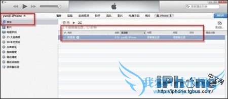 3、接下来我们在“此iPhone上”里会看到一个“音乐”栏,右方的列表界面中看到录制的音频文件了,如下图所示。