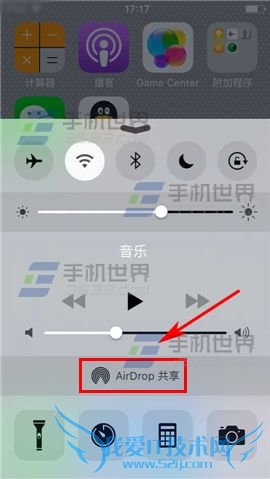 1)在主屏幕下方向上拉出【控制中心】,点击【AirDrop共享】,再点击【所有人】。这个时候蓝牙会自动打开。(如下图)