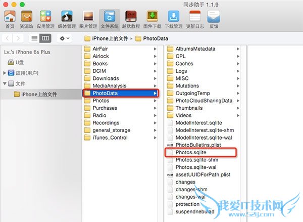 4.导入完成后,再进入 /PhotoData 文件夹中,删除 Photos.sqlite 文件。