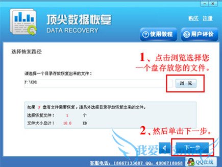 第五步,点击浏览选择一个盘存放要恢复的文件,然后单击下一步。(存放的位置要和恢复文件的位置不同,以免被覆盖)