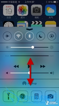控制中心是iOS7新增加的一项功能,就像Android下拉菜单一样,现在对于蓝牙、WiFi、旋屏的操作具备了很大的帮助。操作方法与调出通知中心菜单正好相反,需要从下向上滑动界面调出。不过未来通知中心可以改善的内容还很多,如果能开放让用户编辑自己常用的功能就更理想了。