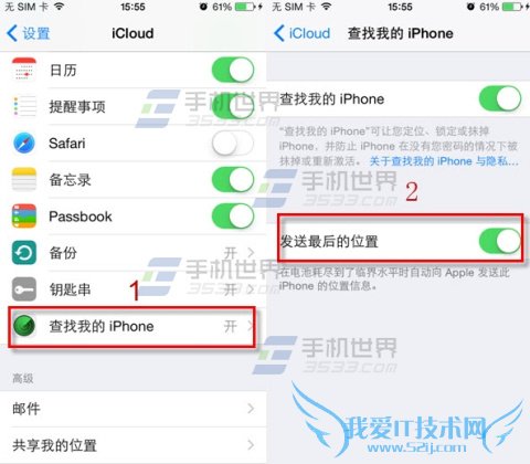 步骤2:点击“查找我的iPhone”一项进入,再开启“发送最后的位置”一项。