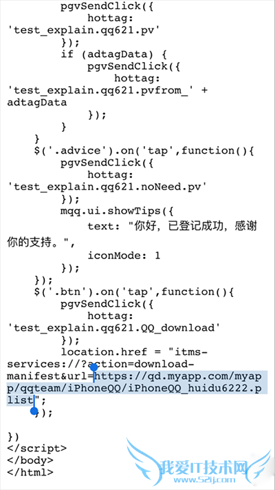 5. 打开下载的网页(我们需要在手机上改后缀名为 .TXT 再打开,PC 上则用记事本打开),在这个网页中我们会看到一个域名为“myapp.com”的链接。