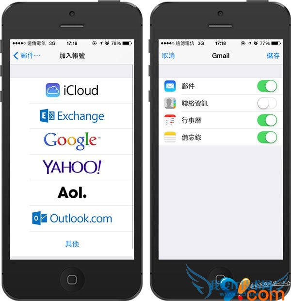 想要跟 Google 或其他平台同步日历,在 设定 > 邮件、联络资讯、日历 加入帐号