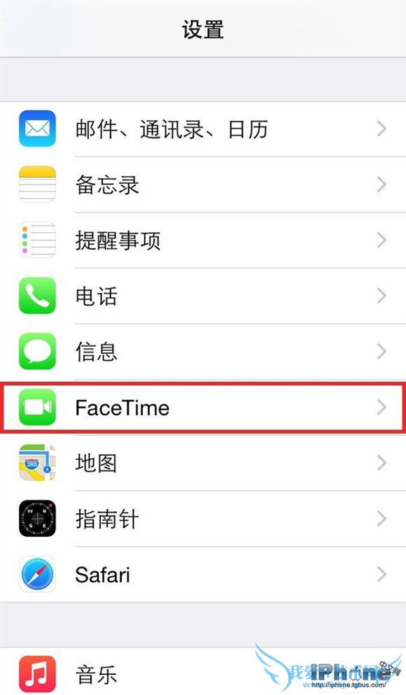 2、滚动屏幕,找到并选择“FaceTime”项;