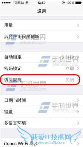 1)打开iPhone6【设置】界面,点击【通用】,选择【访问限制】。(如下图)