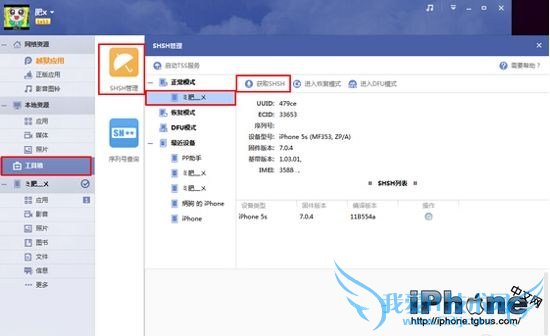 2.点击【工具箱】--【正常模式】的iOS设备--获取SHSH备份