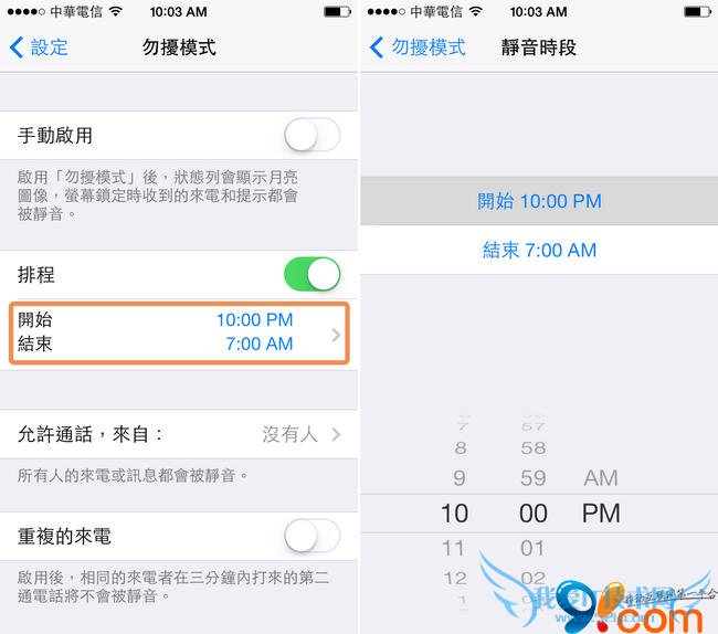 ▲ 勿扰模式设定中开启「排程/设定时间」,可以调整静音时段,把自己的睡眠时段(例如晚上 10:00 ~早上 7:00)设定好,时间一到你的 iPhone 就会静悄悄啦。
