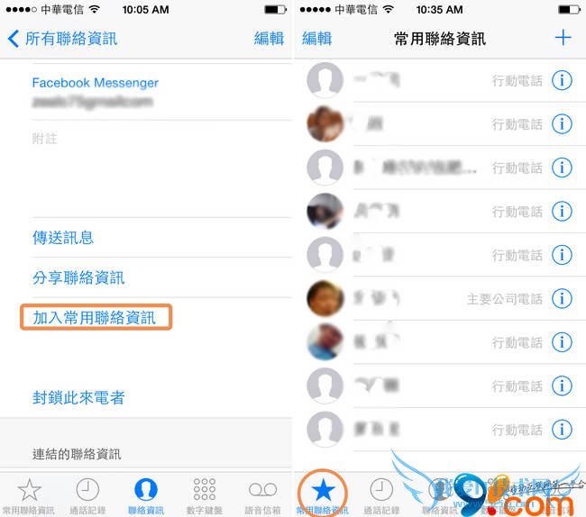 ▲ 在「电话」从联络人中,把不能漏失的重要联络人都设定到「常用联络资讯/个人收藏」。