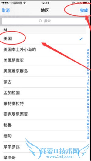 第四步:我们找到“地区”,更换选择“美国”,点击“完成”