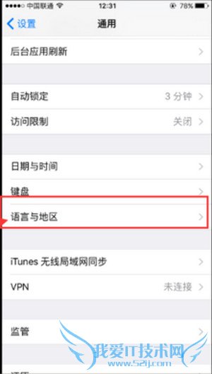 第三步:进入“通用”后,下拉找到“语言与地区”