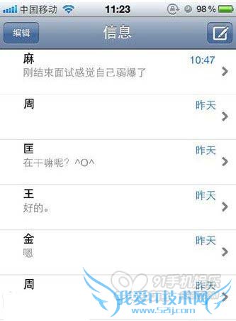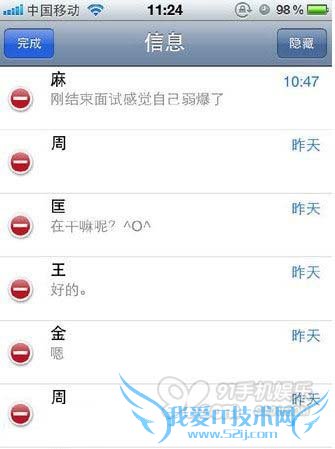 如果要删除短信,只需要再次点击左上角的编辑,然后就可以选择你要删除的信息了。