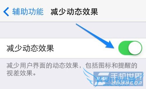 5)最后把减少动态效果的开关打开,这样就可以关闭手机显示的一些动画效果了。