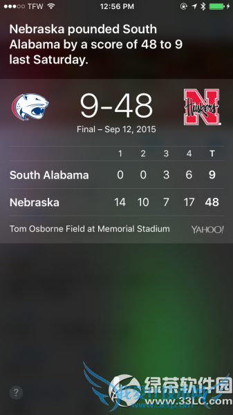 在你关注的比赛中,Siri还能向你汇报结果,当然,你需要问它。