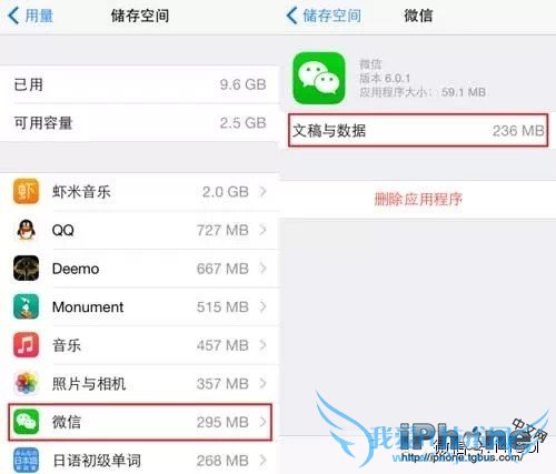 解决方法 :iPhone用户打开设置——通用——用量——管理储存空间,选择占空间多的App来删除缓存数据即可。