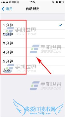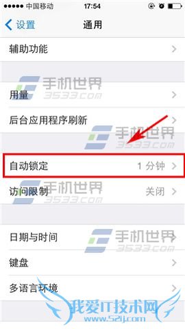 2)在通用设置界面点击【自动锁定】,根据自己的情况选择锁定的时间【分钟数】即可。(如下图)