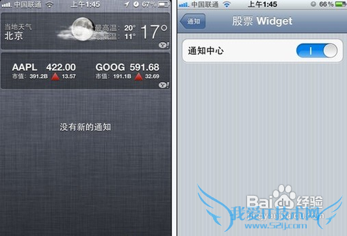 Widgets通知推送。Android上大放异彩的Widgets通知栏终于出现在iOS 5当中。新的通知栏将会出现在解锁界面以及待机界面,下拉之后就可以看到最新的推送通知
