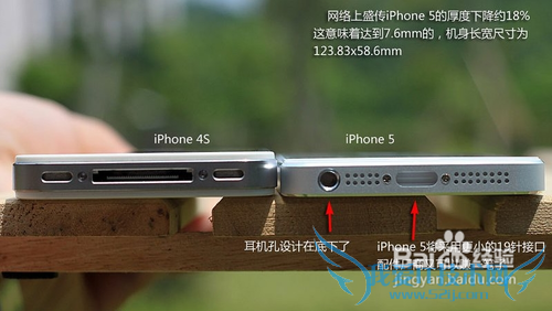 iPhone 5将顶部简洁优化了,除耳机孔位置有所变动,降噪麦克风位置也有所改动: