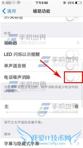 2)接着点击【辅助功能】进入,打开【电话噪声消除】右边开关即可。(如下图)