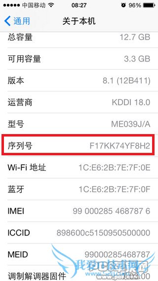再找到“关于本机”,就可以看到iPhone的序列号了。