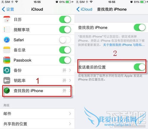 步骤2:点击“查找我的iPhone”一项进入,再开启“发送最后的位置”一项。