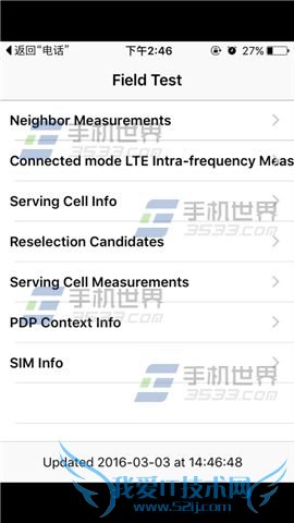 2)进入【Field Test】界面后,我们按住【电源键】直至提示滑动关机,不要松手,按住home键直至返回屏幕,这时我们即可看到左上角的数字信号显示了。(如下图)