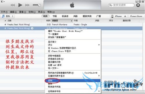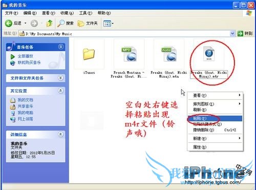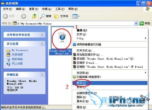 12、找到转换好的35秒音乐文件(m4r格式),选择剪切把它整个转移走,防止找不到了。