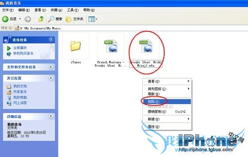 13、在我们放音乐的文件夹中,空白处右键点击粘贴。