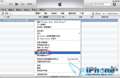 6、那么我们设置好时间,点击确定进入此界面后,我们右键选择歌曲,菜单中选择创建一个AAC版本。