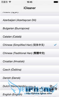 设置步骤:下拉至language selection(选择语言),选择中文,退出程序后,双击home键可看到后台运行的程序,将iCleaner完全关闭后重开就能看到中文版的iCleaner。