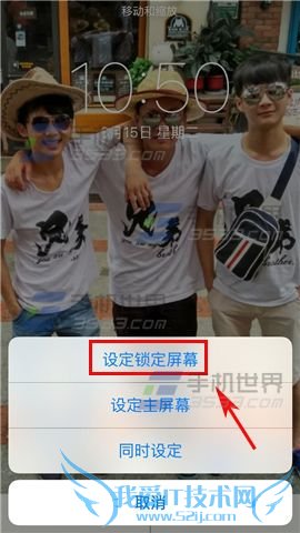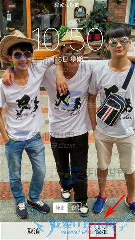 3)挑选好选定的照片后进行调整大小和位置,点击右下角的【设定】,最后再选择【设定锁定屏幕】即可。(如下图)