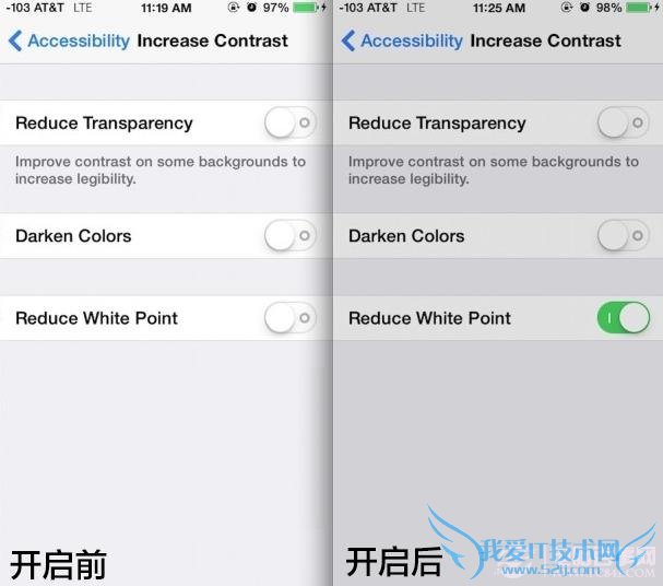 结束语:目前苹果对这个功能没有任何的官方说明,不过这个功能和Android上面的蓝光滤波器很相似。Reduce white point 应该是减少参考白色的色温,色温从高变低,让白色的刺眼层度降低,这样以白底为基础的 iOS 7 看起来会比较不刺眼。
