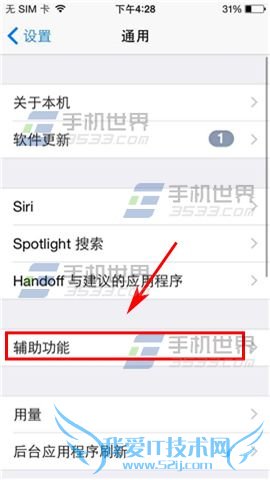 2)进入通用界面点击【辅助功能】,开启【电话噪声消除】右边按钮即可。(如下图)