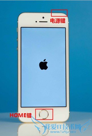 在教程正式开始前,我们需要了解下进入DFU的两个重要按键--电源键和HOME键,这两个键分别位于iPhone的顶部和屏幕下方,具体位置见下图。