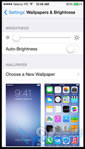 第一步,进入到设置——墙纸与亮度,把“自动亮度调节”按钮关闭。