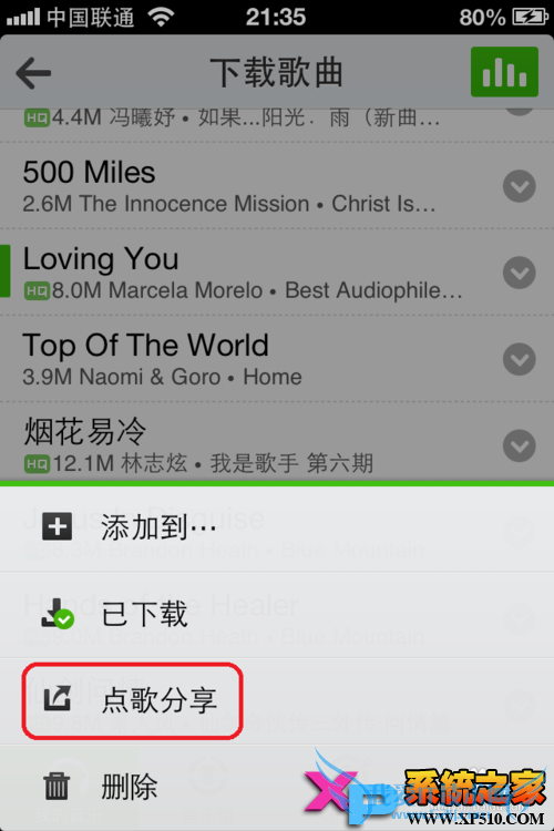 步骤阅读 2接下来在弹出的菜单中选择“点歌分享”,如图所示