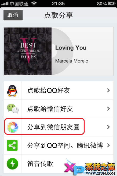 后面的操作和之前的方法一样,就可以实现在微信朋友圈分享音乐了。