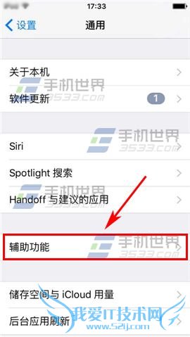1)点击设置进入,再选择【通用】,进入后点击【辅助功能】。(如下图)