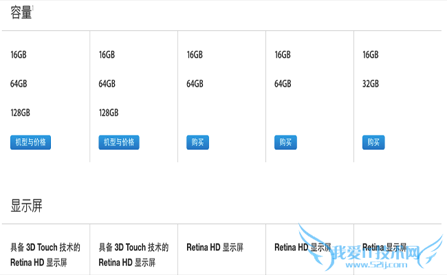 容量上,新款的 iphone6s 以及 iphone6s plus 相比上一代的 iPhone6 以及 iPhone6 plus 多出一个 128G 版本选择,同时这两代机型都取消了 32G 版本。而 iPhone5s 则保留了 32G 版本的选择。显示屏上,新款的 iphone6s 以及 iphone6s plus 升级到了「具备 3D Touch 技术的 Retina HD」 显示屏。