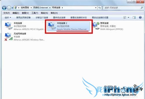 点击进入更改适配器设置后,如图,会看见“本地连接 2”,证明iphone成功连接电脑