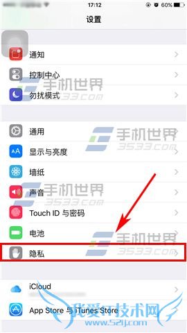 1)点击【设置】进入,再选择【隐私】。(如下图)