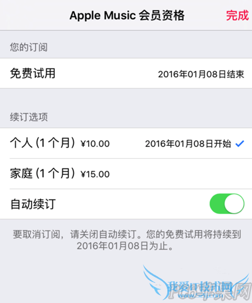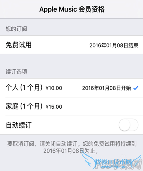 目前 Apple Music 的会员资格分为个人会员资格(每个月 10 元)和家庭会员资格(每个月 15 元)。Apple Music 可以试用三个月,但是到期后,会自动续订。
