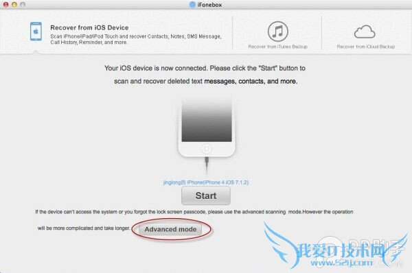 可恢复iOS 5/6/7/8系统的苹果设备的 各类数据,并且有多个模式,