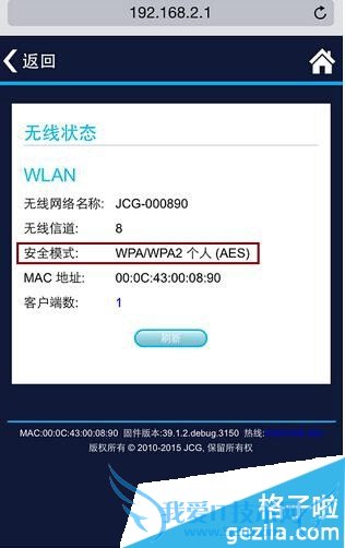 3.在手机设置之前,需要牢记路由器设置的无线名称和密码,以及路由器设置的WiFi加密方式。这款JCG无线路由器并没有显示采用的是什么加密方式,但一般情况下都是WPA/WPA2混合加密的。事实上,当我进入“系统信息”-“无线状态”查看的时候,确实是WPA/WPA2混合加密的安全模式,这也是很多路由器常见的WiFi安全模式。