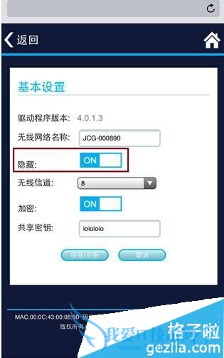2.我们首先设置路由器隐藏WiFi信号,根据路由器手册,或者路由器背面标贴的提示,打开浏览器进入路由器设置页面。进入“无线设置”-“基本设置”,打开“隐藏”开关就行了。