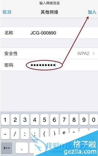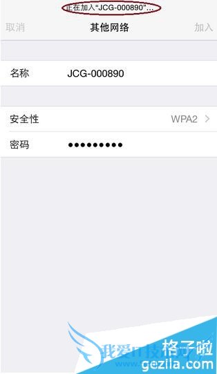 6.接下来输入正确的WiFi无线网络密码,单击“加入”,iPhone就开始尝试连接隐藏的WiFi信号了。